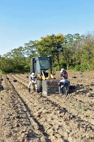 好天に恵まれ今日4回目のさといも株の堀上です本年は全国的にも太りがイマイチとか当園も同様の感が否めません。
